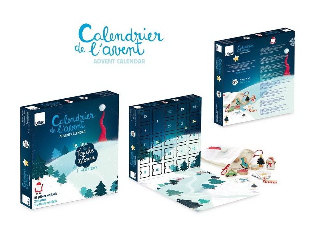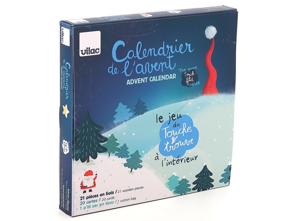 Adventní kalendář Hmatej a najdi od firmy Vilac je originální předvánoční dárek s touto oblíbenou hrou, která je vhodná již pro děti od 2 let. Čekejte na Vánoce stylově a bez čokolád.