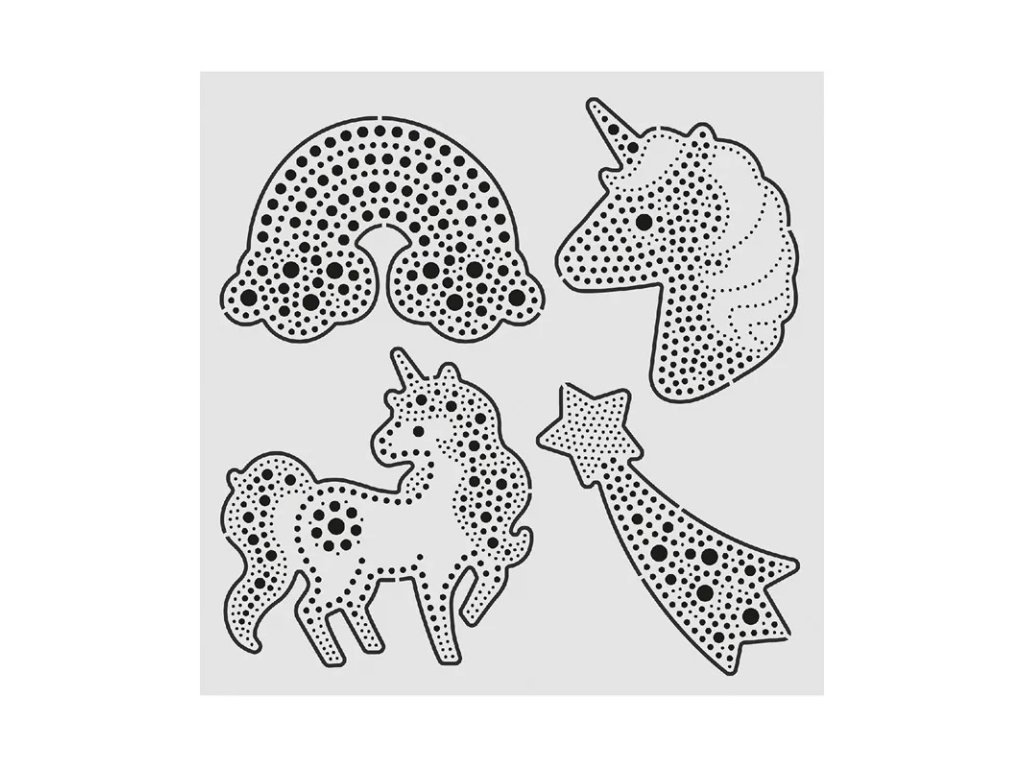 Nezapomeňte, že touto sadou kreativní tvoření vašich dětí nekončí. Šablonu je možné používat opakovaně, takže stačí předkreslit jednorožce na pevnější papír nebo karton a děti mohou tečkovat - tvořit dál.