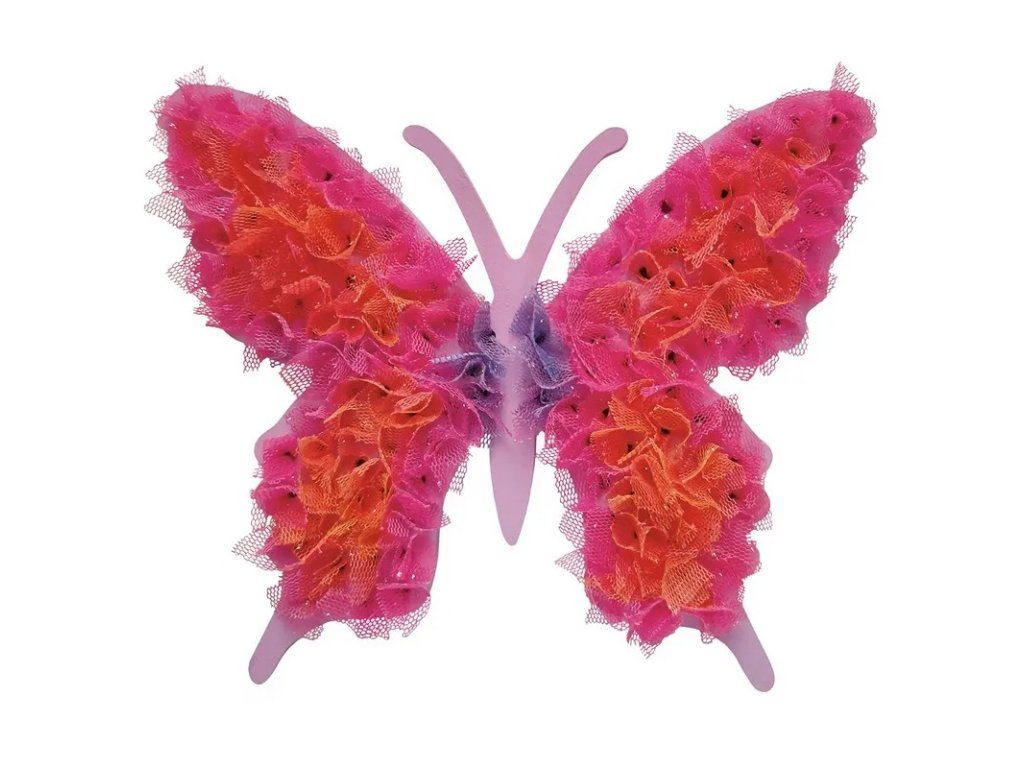Sada obsahuje dřevěné díly k dotvoření, 8 barev na vodní bázi, 1 plochý štětec, 2 dřevěné špejle, různobarevný tyl (25x160 cm)