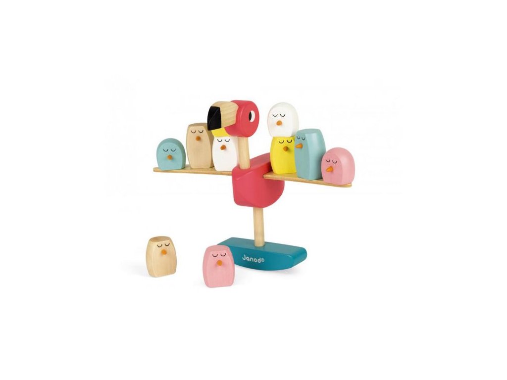 Dětská balanční hra Plameňák Zigolos od firmy Janod je zábavná balanční hra pro děti. Přidejte co nejvíce ptáčků na křídla plameňáka. Kdo ho první převáží, prohrál.