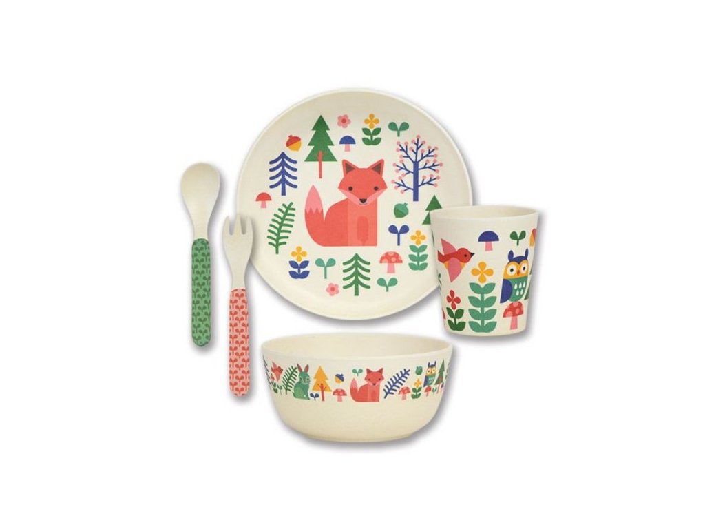 Bambusová dětská jídelní souprava Liška je krásná kompletní sada nádobí pro stolování malých dětí. Dětem bude z veselého nádobí chutnat a jídlo je bude bavit!