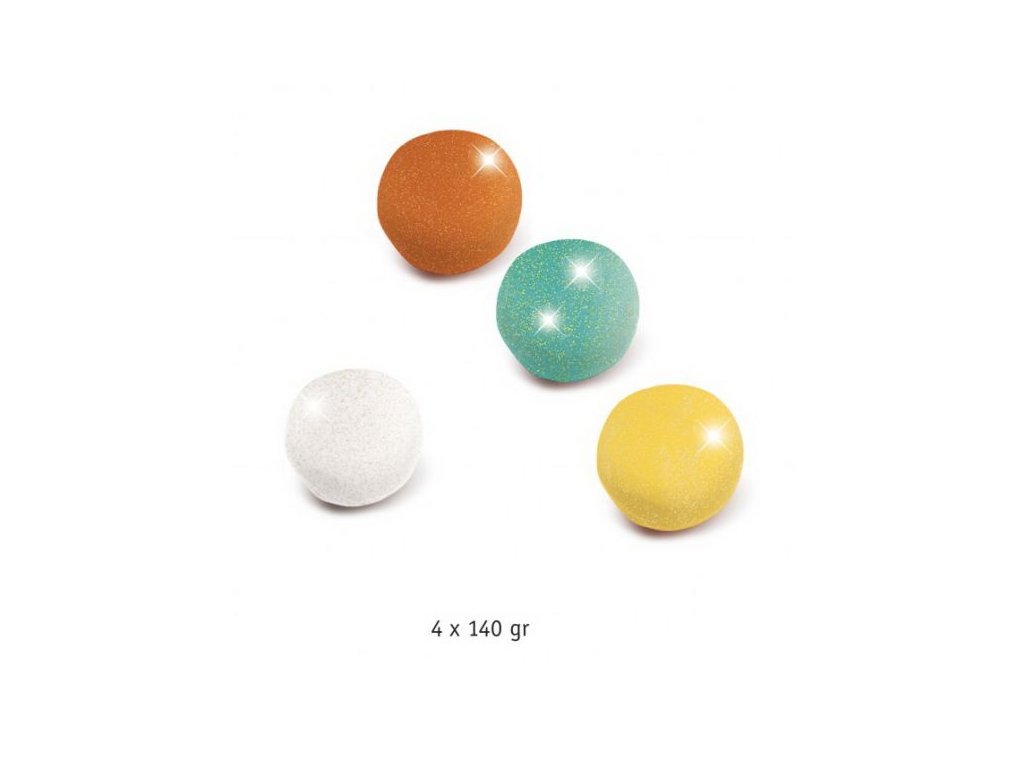 V balení děti najdou 4 kelímky plastelíny v krásných třpytivých barvách. Plastelína je krásně jemná, snadno se s ní pracuje i nejmenším dětm a nešpiní.
