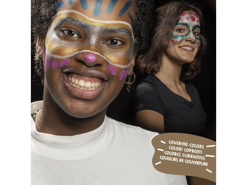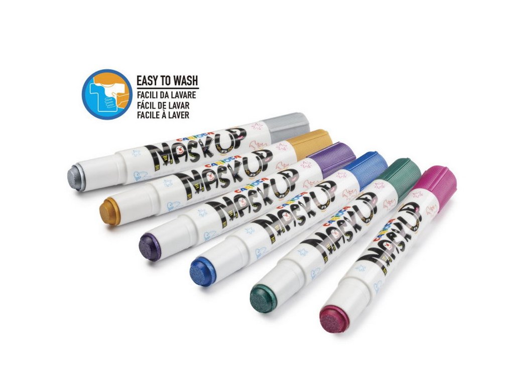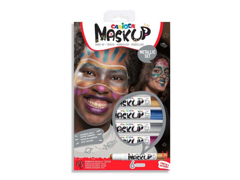 Děti milují malování na obličej i na tělo a s barvami Carioca Mask UP zvládne malování každý. A pokud neumíte malovat? Malujte čáry a tečky. Improvizujte a vytvořte metalické originální zdobení.
