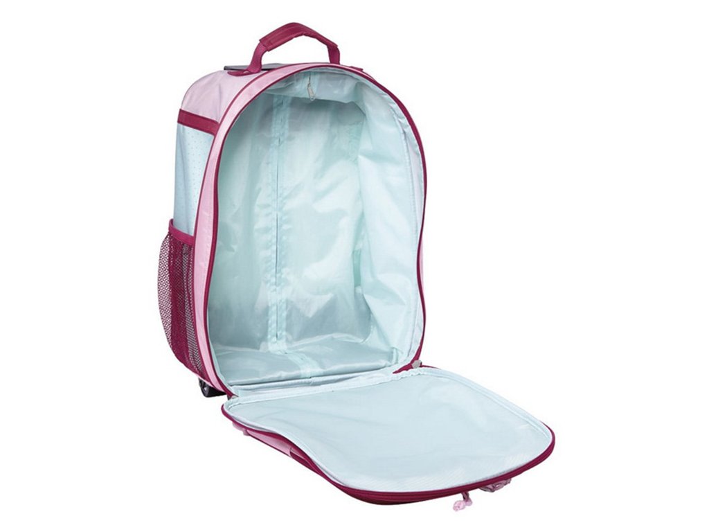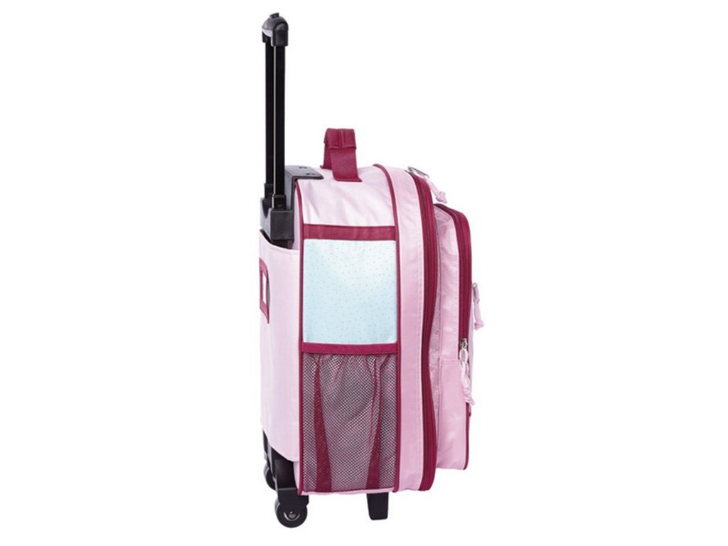 Kufr má teleskopické madlo s aretací, velký hlavní úložný prostor, 2 boční kapsy, menší přední úložnou kapsu na zip a 1 malou kapsičku v přední části také na zip. Má na sobě reflexní prvky a jmenovku.