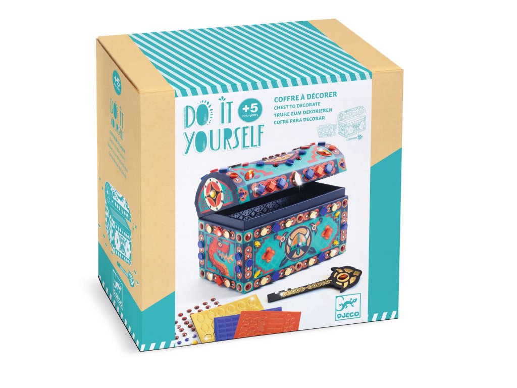 DIY Výtvarná sada Truhla na poklad od firmy Djeco je kreativní sada, se kterou si děti vytvoří vlastní truhličku na poklad. Má tajné dno, které otevřou klíčem a schovat do něj mohou ta nejtajnější přání a tajemství.
