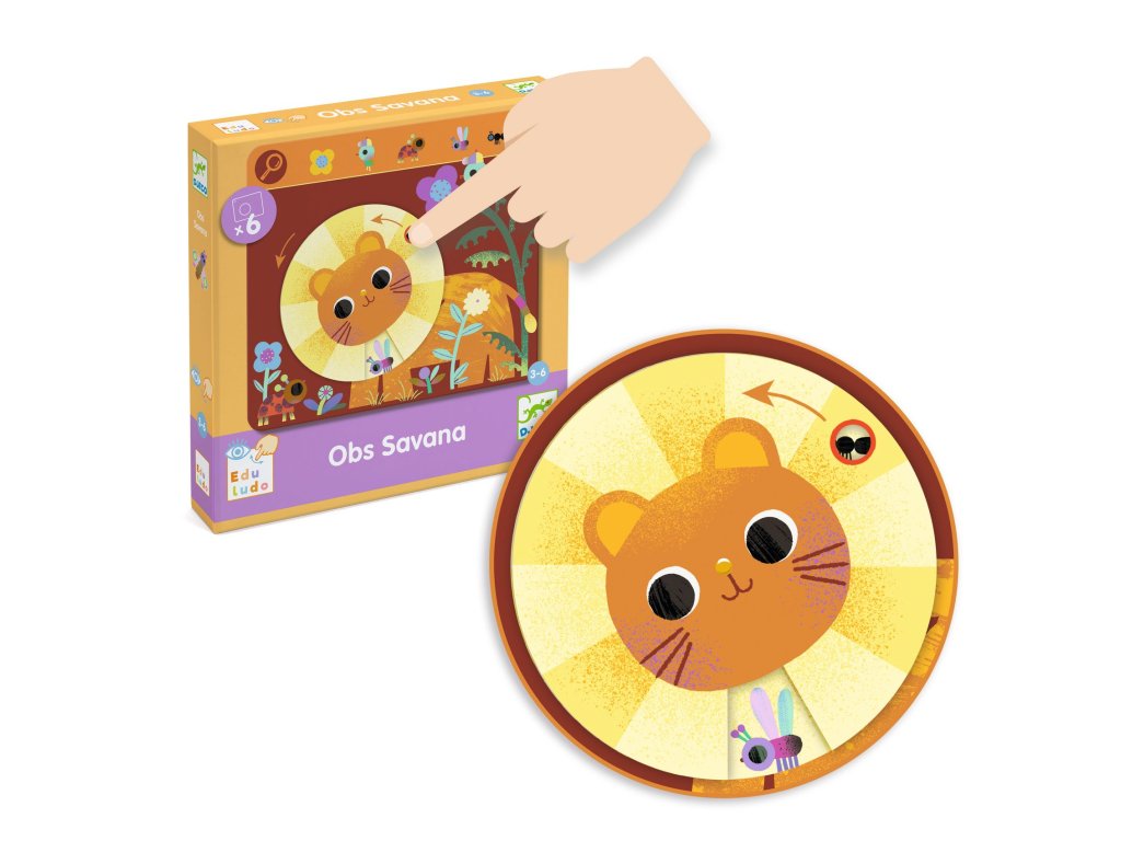 Eduludo Interaktivní hra Hledej a najdi Savana od firmy Djeco nadchne děti i rodiče. 6 malovaných desek s kolečky podpoří rozvoj dětí učením hrou. Stačí jen zatočit a hledat.