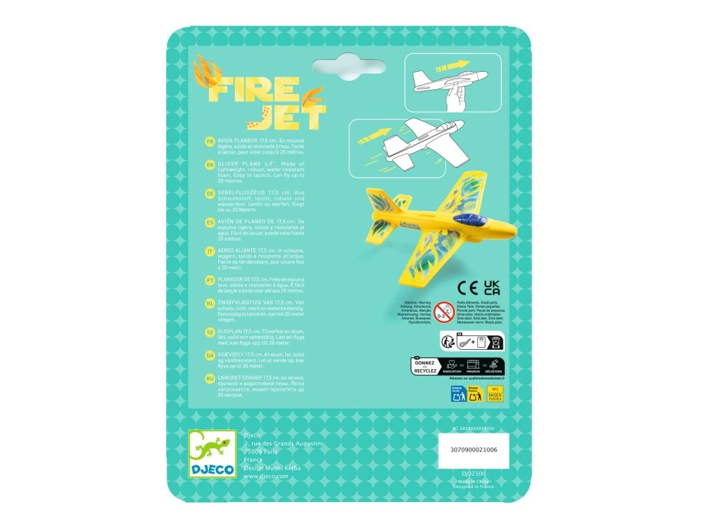 Fire Jet Djeco je hračka na ven - házecí letadlo z odolného a lehkého materiálu. Doletí až 20 metrů a stane se skvělým parťákem pro venkovní aktivity dětí od 5 let. Jste připraveni na letecké dobrodružství?