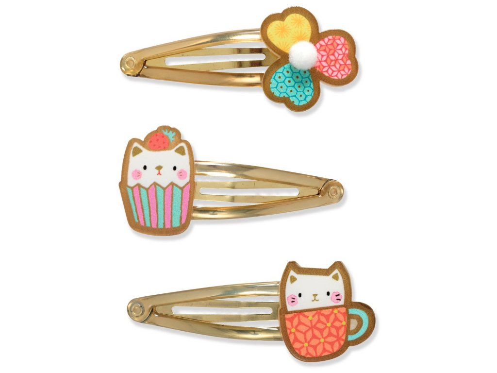 Balení obsahuje 3 zlaté sponky do vlasů (akrylátové ozdoby kočičky a lístku)