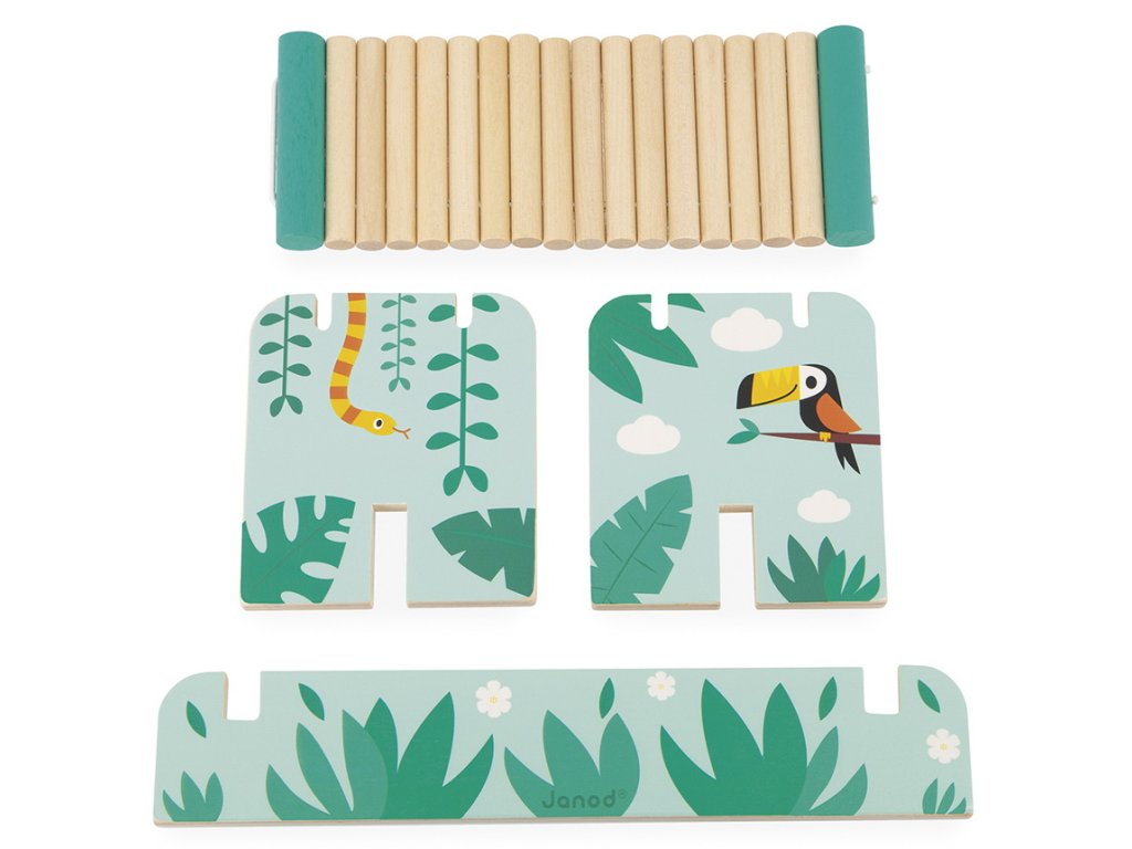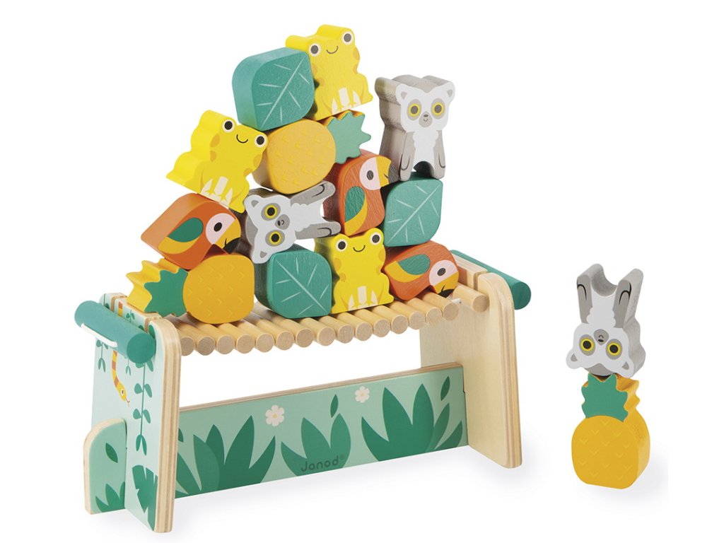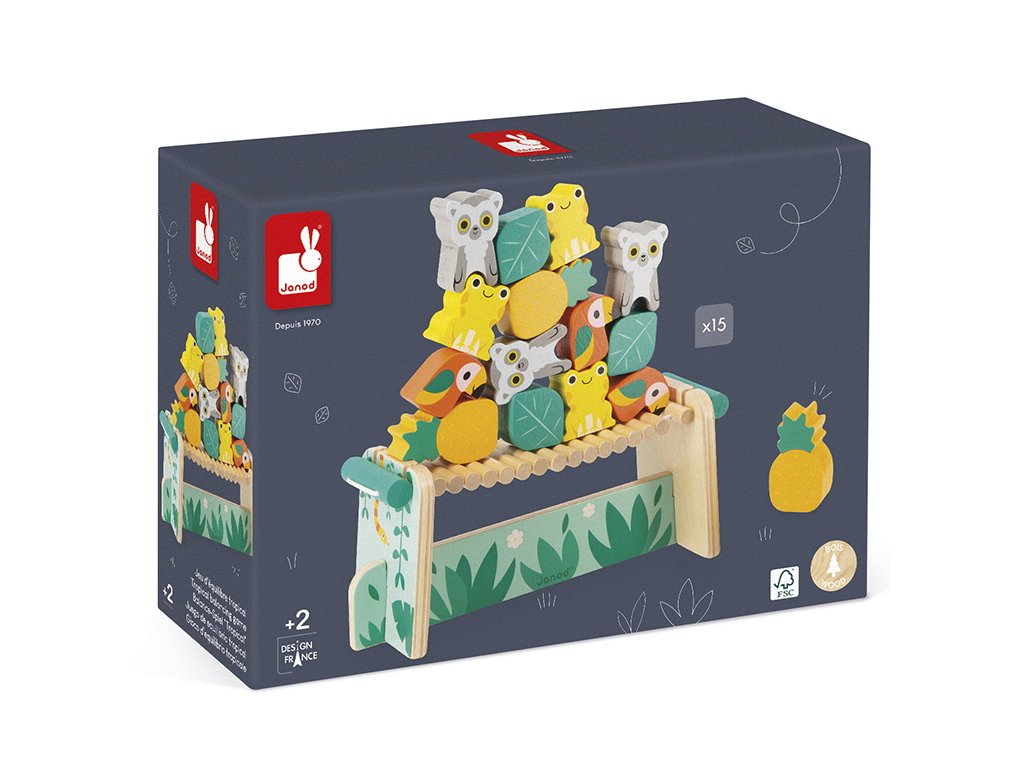 Dřevěná balanční hra Tropik od firmy Janod je vzdělávací hra pro děti, která jim protrénuje jemnou motoriku a zároveň je seznámí s rozložením váhy. Postavte na dřevěnou lávku co nejvíce zvířátek a dílků. Ale pozor. Most je houpací!