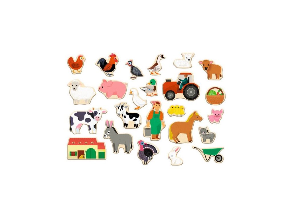 Dřevěné magnetky Na statku od firmy Djeco budou skvělou zábavou pro všechny děti. Vytvořte si pořádný dvorek a farmu plnou zvířátek. Zábava začíná!