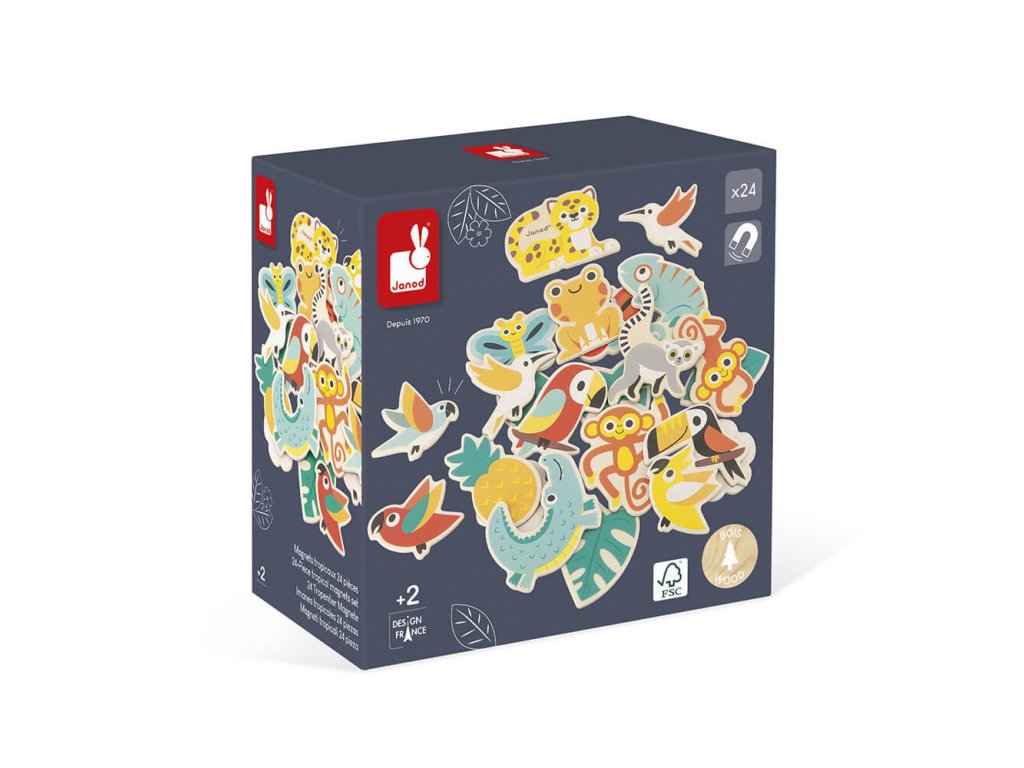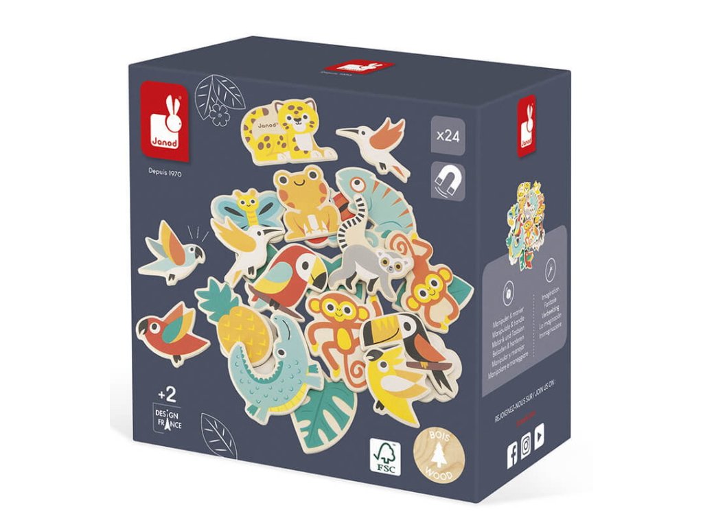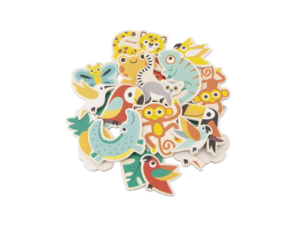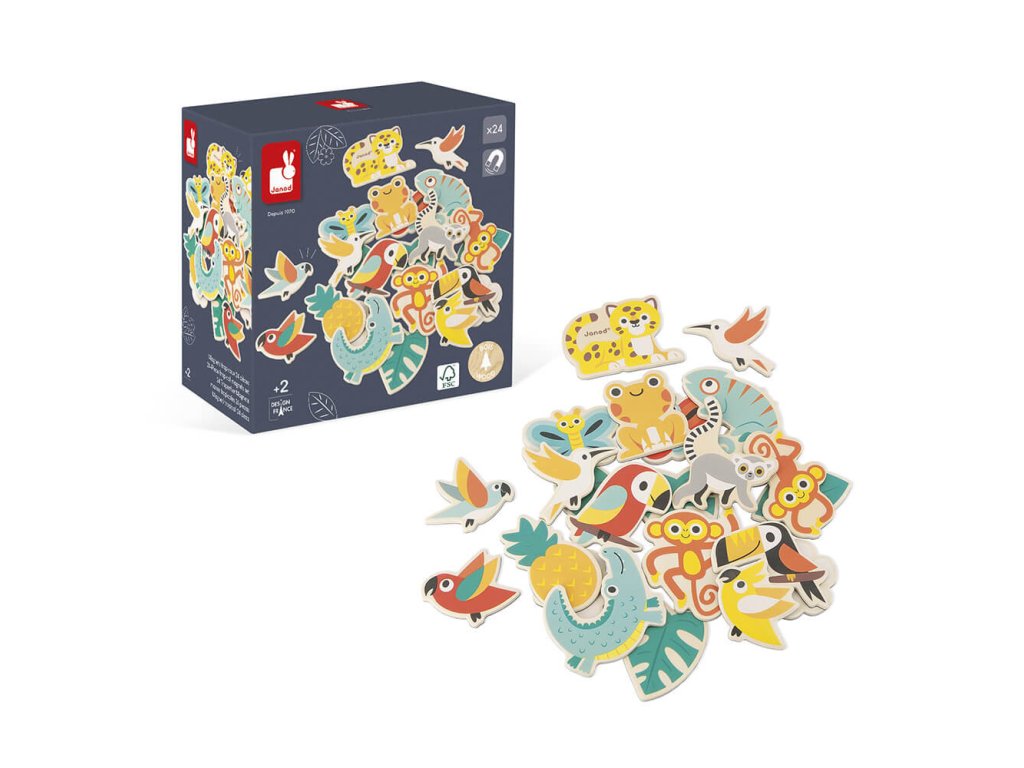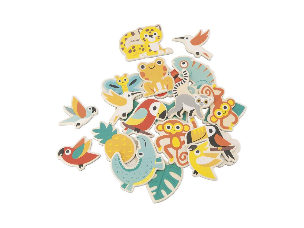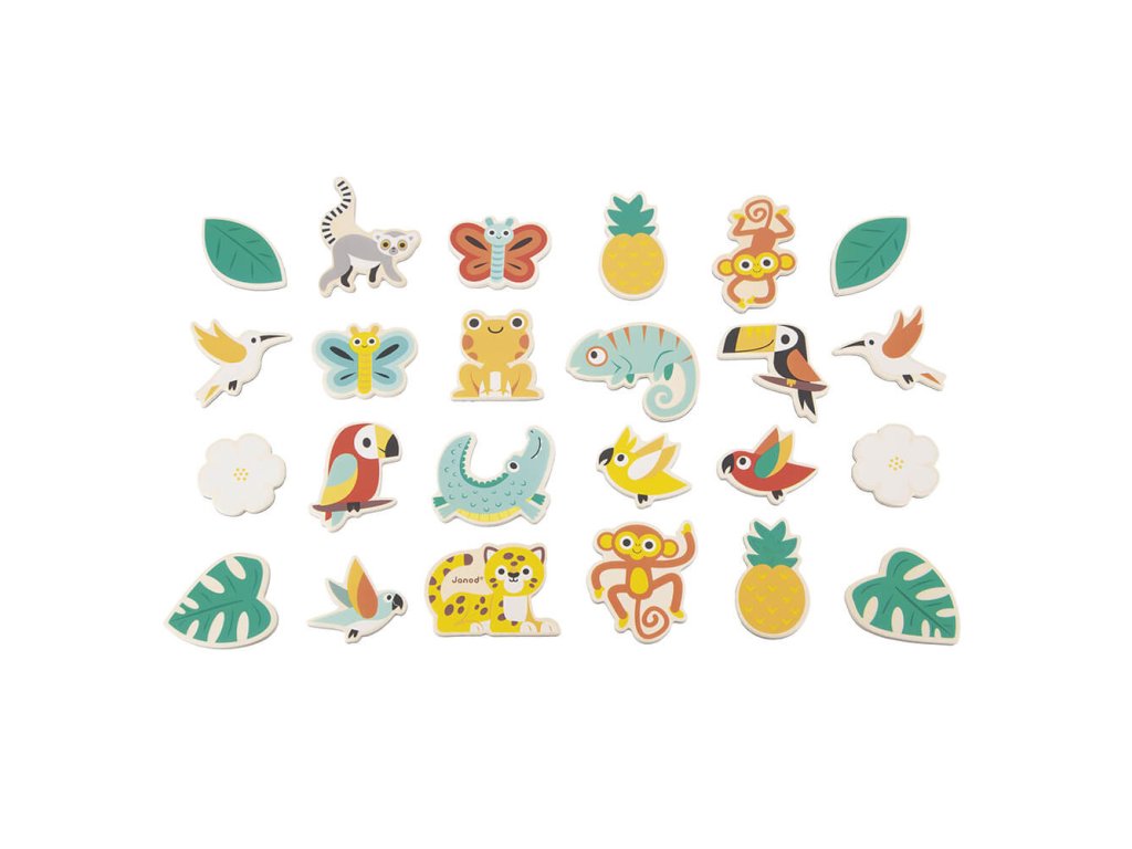 Dřevěné magnetky od firmy Janod budou skvělou zábavou pro všechny děti. Vytvořte si tropické oblasti plné zvířátek. Zábava začíná!