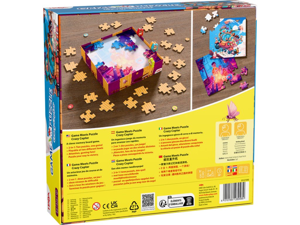 Společenská hra Bláznivý vrtulník - hra a puzzle 2v1 od firmy Haba je zábavná hra pro děti od 5 let.