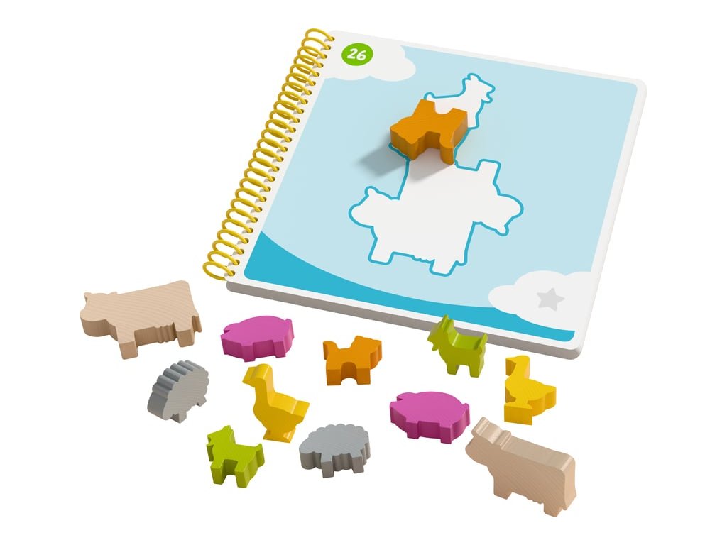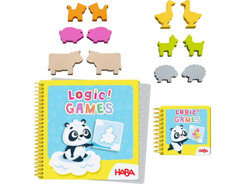 Balení obsahuje: barevná dřevěná zvířátka, sešit se zádáním, 60 stupňujících se logických úloh