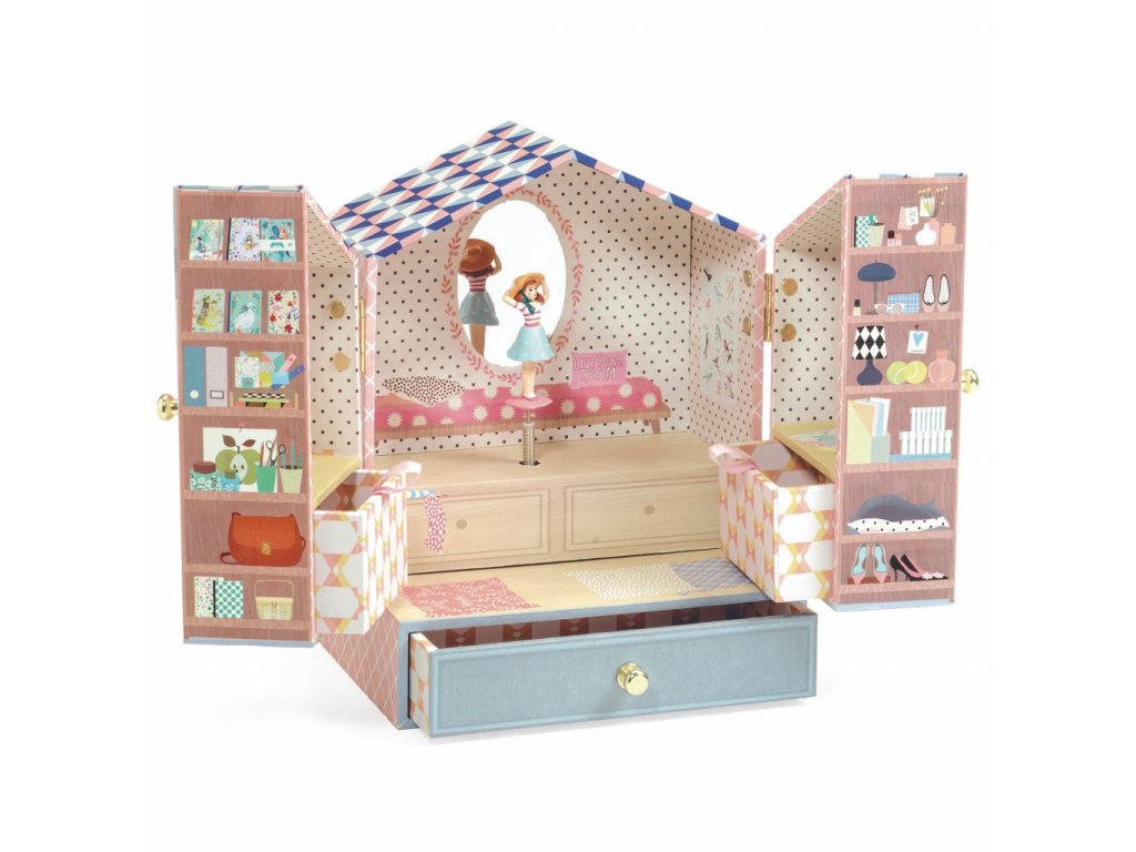Hrací šperkovnice s tančící modelkou od firmy Djeco. Co vše ukrývá za poklady? Velké poklady malých slečen! Holčičky si do ní mohou uschovat sponečky, prstýnky, řetízky i korálky. Šperkovnice po otevření hraje příjemnou melodii a modelka přitom tančí.
