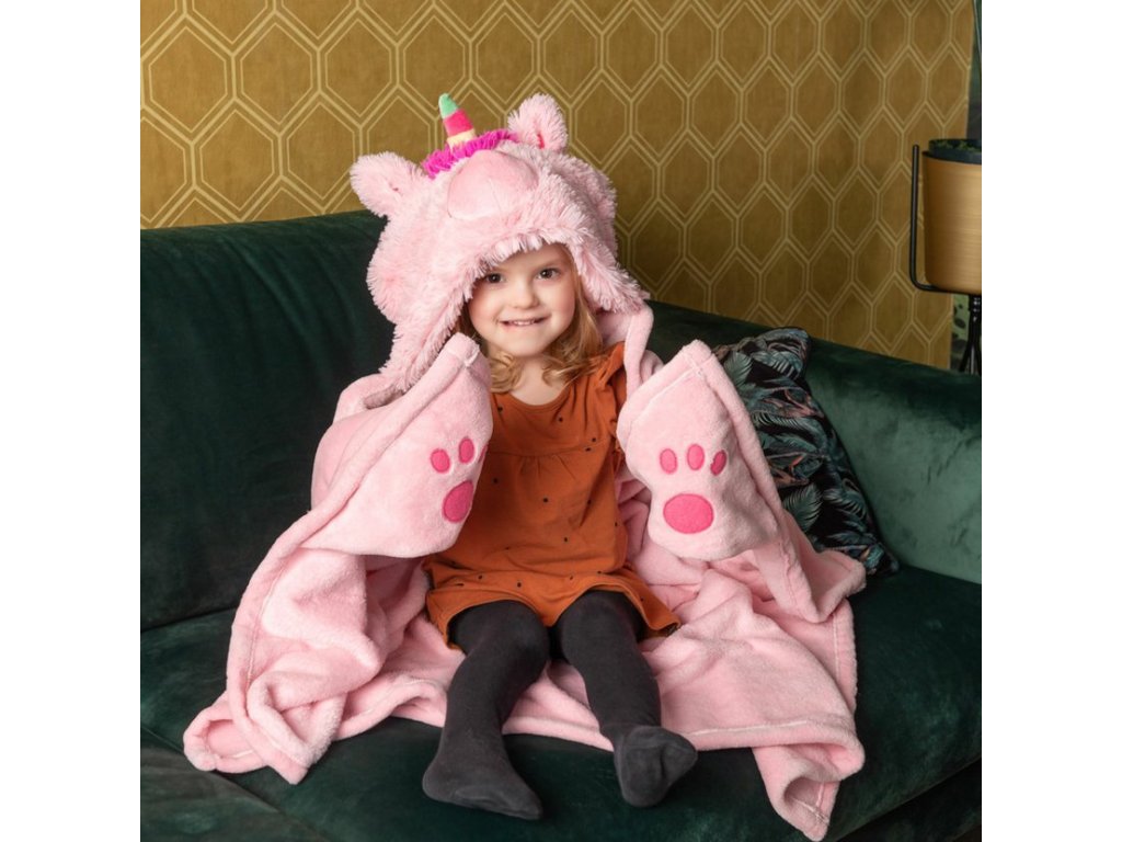 Hřejivá deka s kapucí - Jednorožec od firmy Cozy Noxxiez je heboučká deka, která svádí k zachumlání i ke hře. Zahřeje děti a podpoří jejich dětskou fantazii při vytváření různých příběhů.