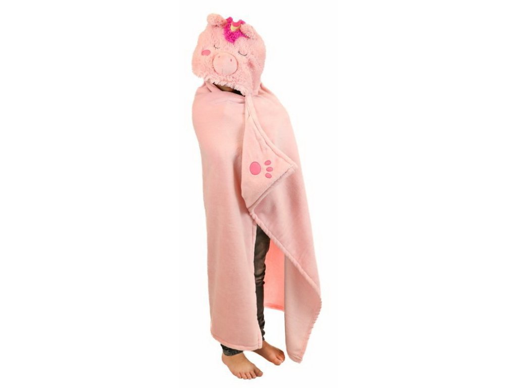 Hřejivá deka s kapucí pro děti je vyrobena s z měkoučkého fleecu. Umožní dětem se pořádně zachumlat a zahřát. Kapuce je vytvořena jako zvířátko. Děti tak deka baví ještě více. Mohou si s ní hrát, ale také se bavit.
