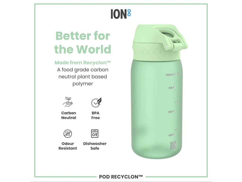 Ekologická láhev Ion8 je vyrobena ze zdravotně nezávadného materiálu recyclon - transparentně uhlíkového neutrálního plastu bez BPA. Materiál je lehký, snadno omyvatelný a odolný vůči zápachu. Chuť nápoje zůstává čerstvá a plná chuti.