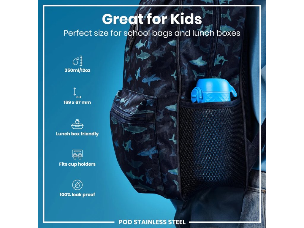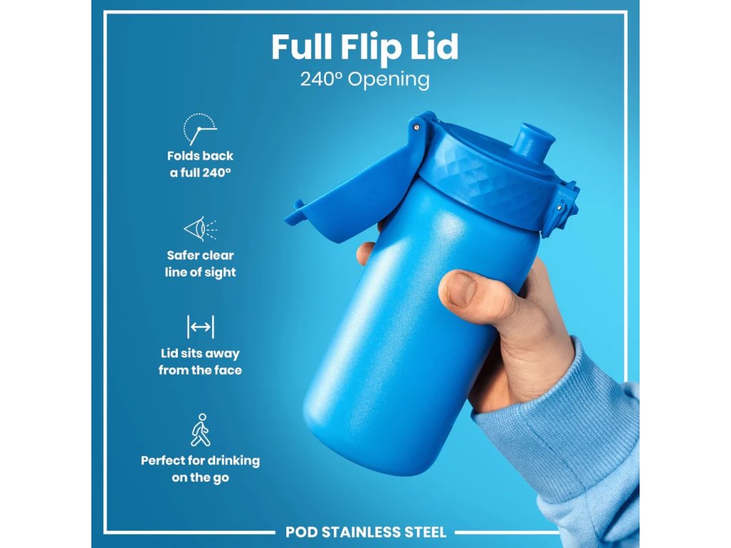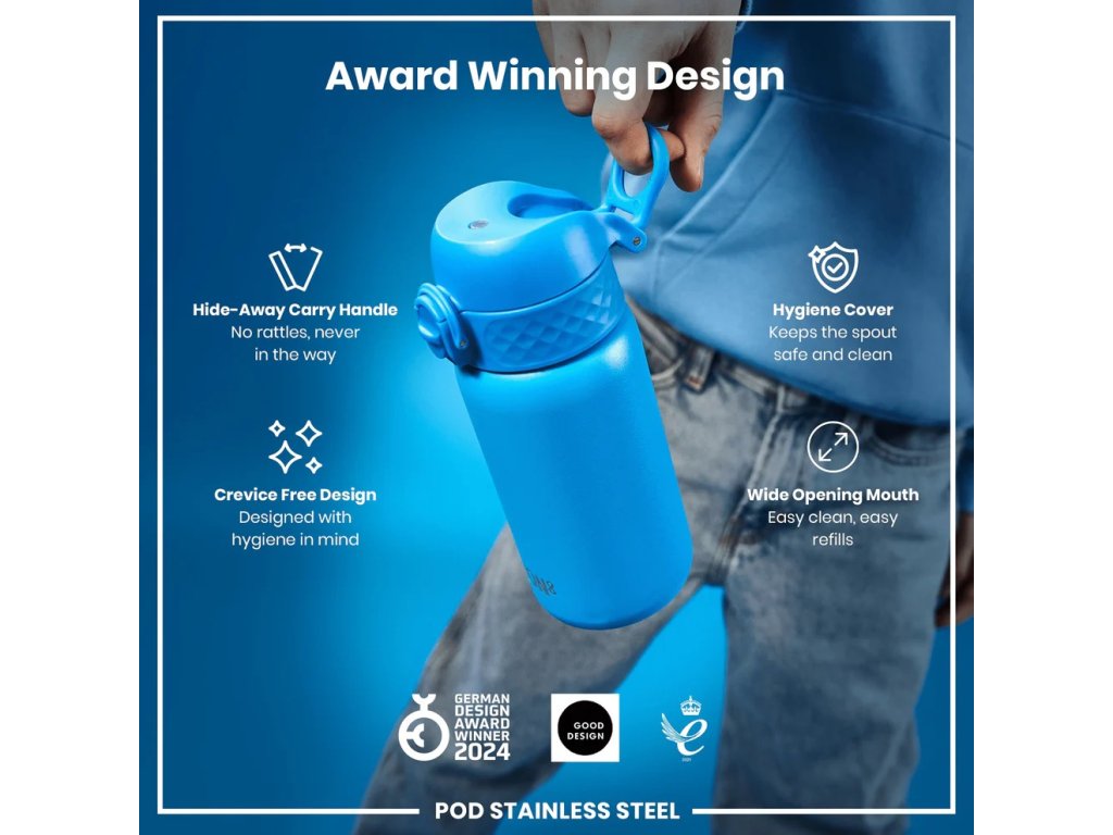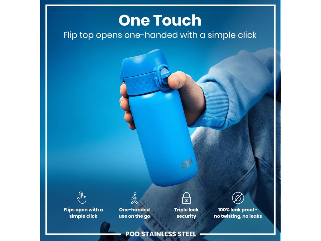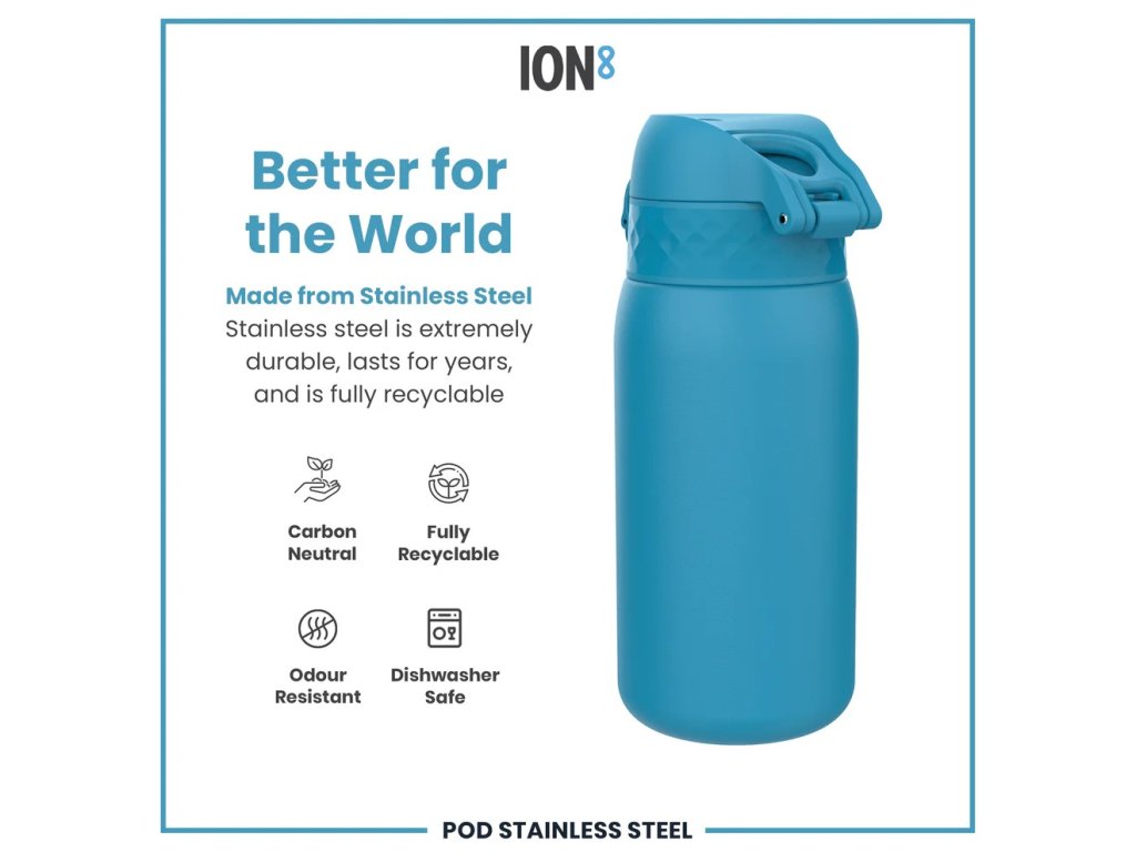 Nerezová láhev na pití Blue 400 ml od firmy ion8 je praktická láhev, kterou užijí děti i dospělí. Hodí se do školy, na sport i na cestování.