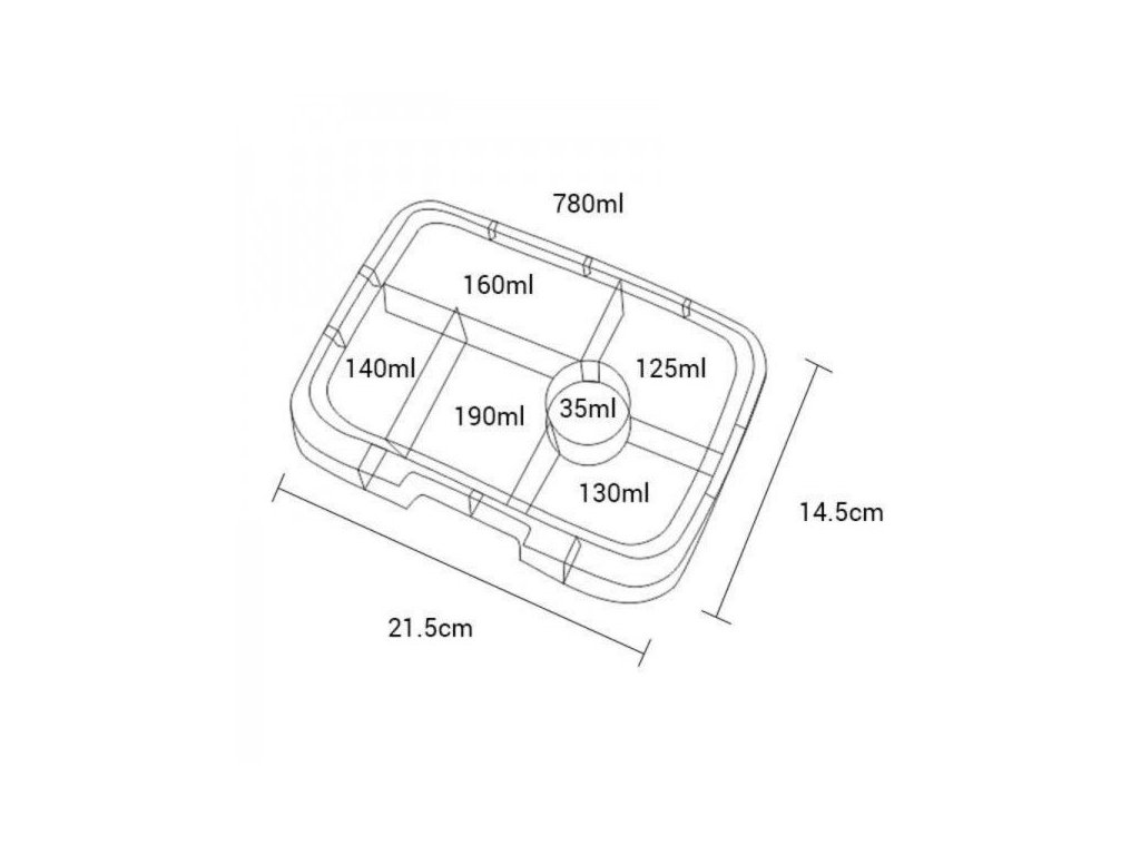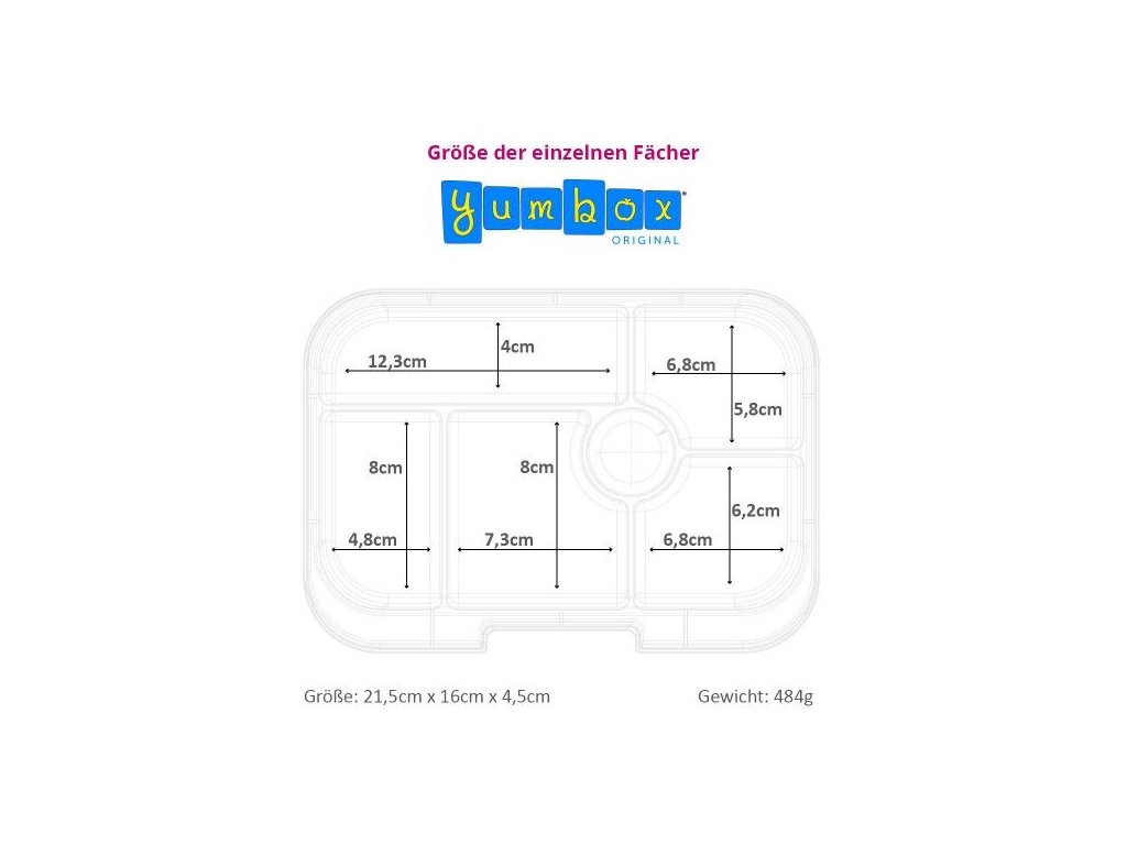 Zábavné a praktické krabičky Yumbox Original jsou rozděleny na 5 přihrádek a jednu speciálně na dip.