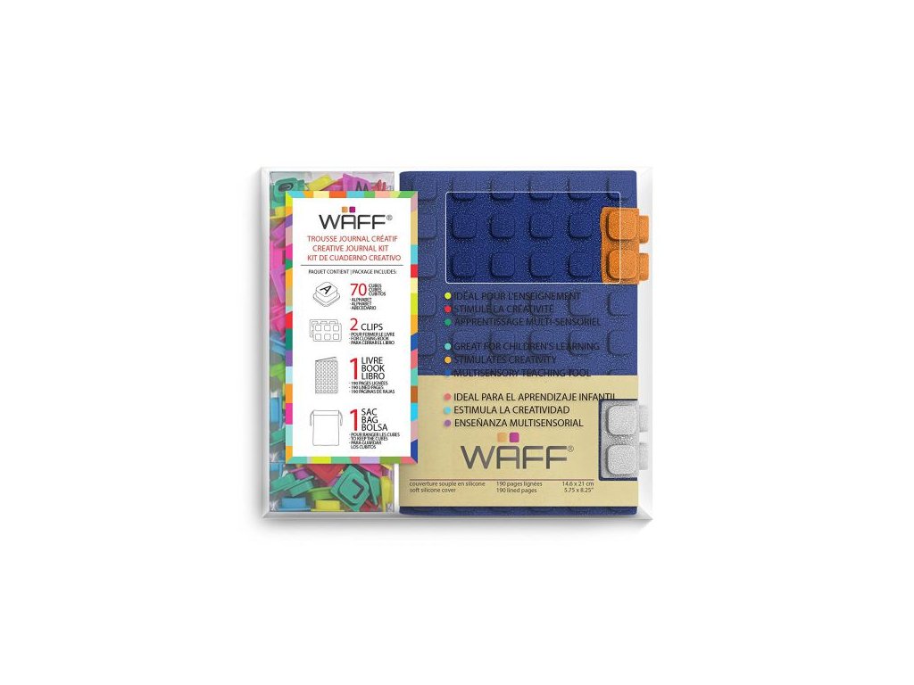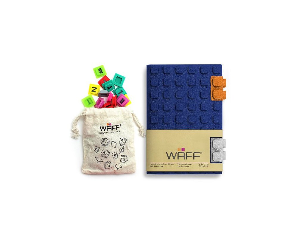 Deník WAFF je zápisník s vtipným originálním obalem. Gumové čtverečky na obalu si děti vyzdobí písmenky, ozdobami a emotikony. Na obalu si tak mohou vytvořit nápisy, jména, své pocity a vše, co je zrovna napadne.