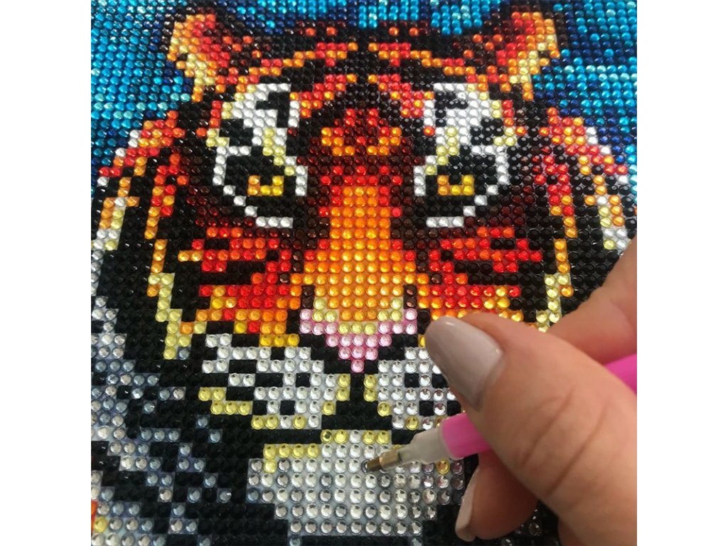 Vytvořte si krásný obraz tygra lepením drobných diamantů - malých dílků mozaiky.