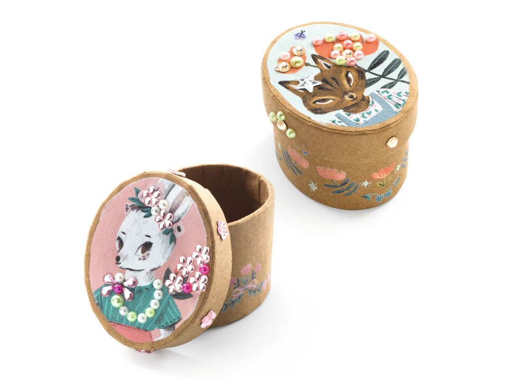 Kreativní sada Vytvoř si krabičky se zvířátky od firmy Djeco je určena pro všechny tvořivé děti. Vyrobí si romantické třpytivé mini krabičky na poklady.
