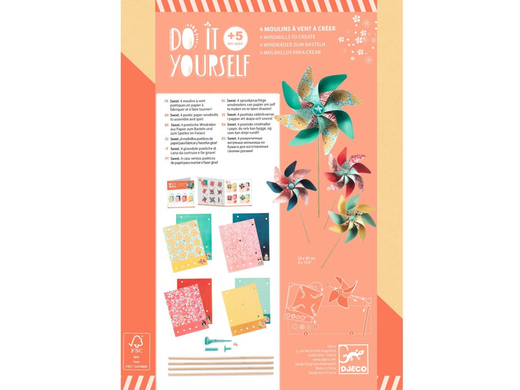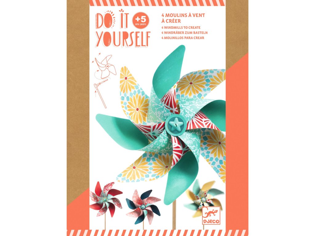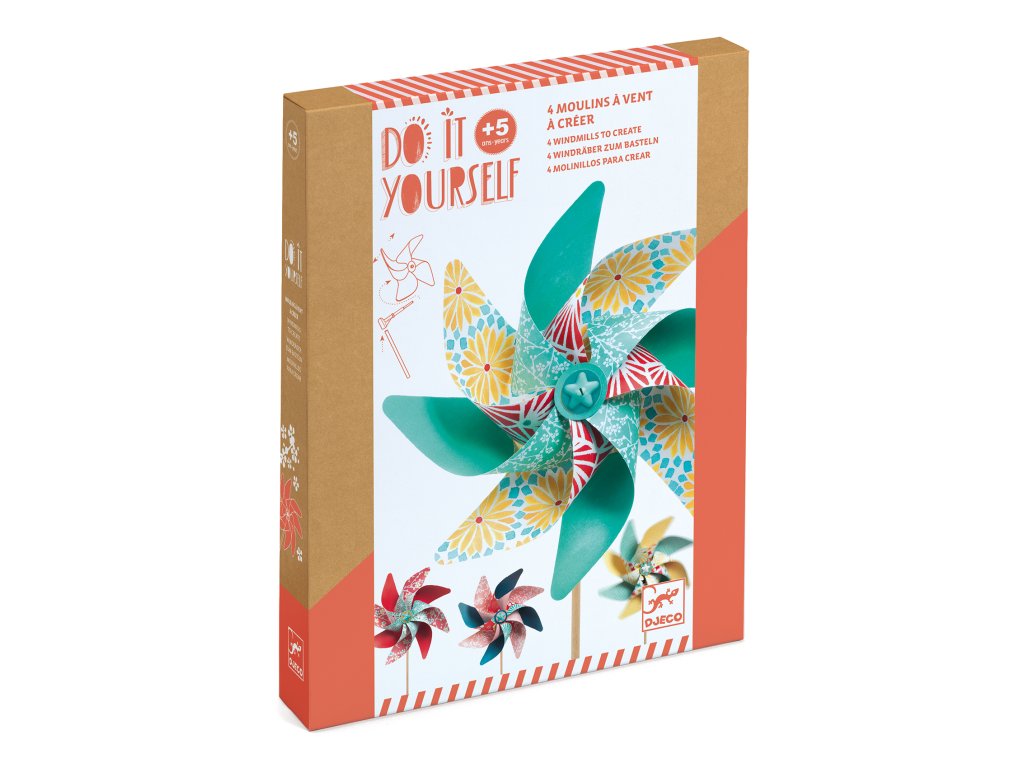 Djeco Kreativní sada DIY Vytvoř si pestrobarevné větrníky