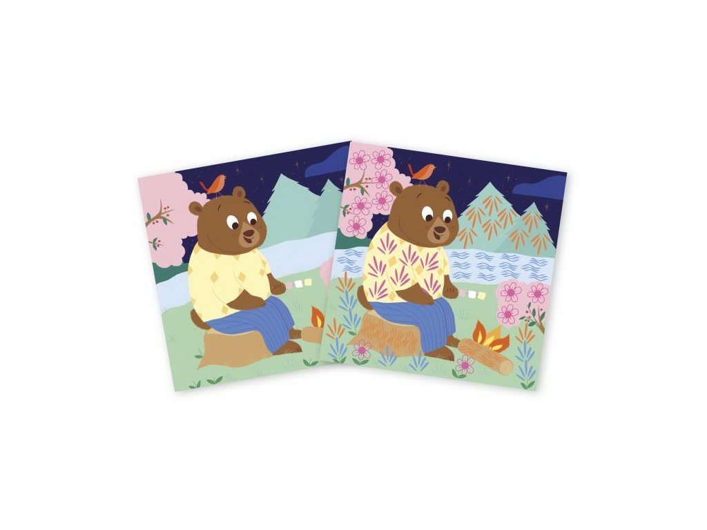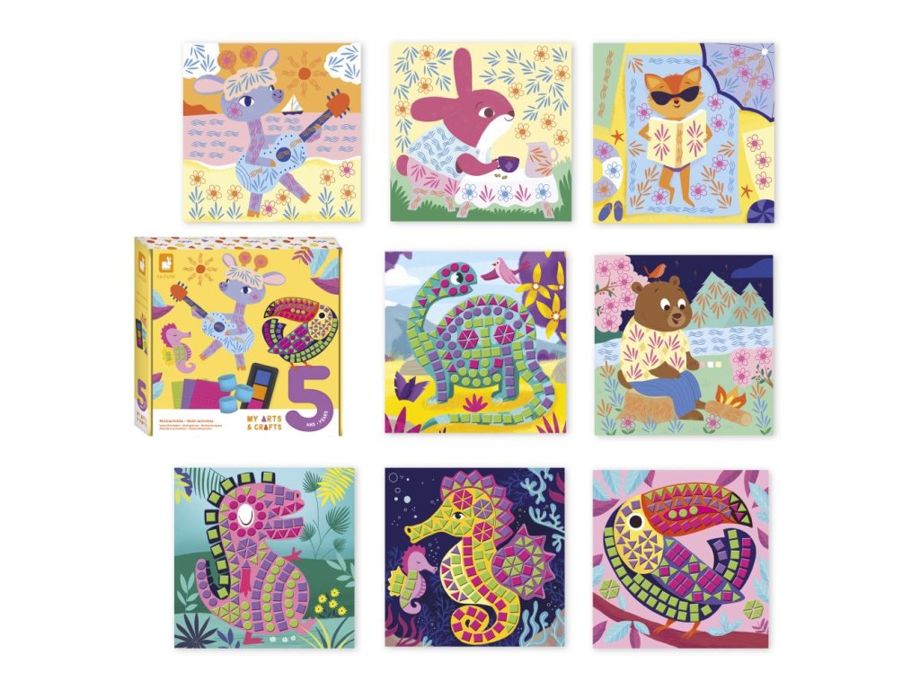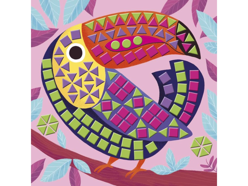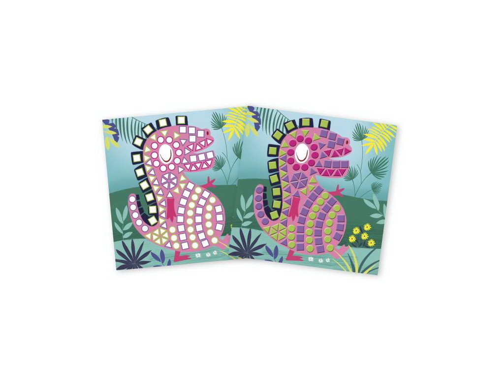 V této sadě děti najdou 9 pevných kartonových obrázků, které si postupně dotvoří. 4 obrázky budou krásné díky mozaikovým čtverečkům, které děti nalepí na předurčená místa a 6 zbylých obrázků si postupně orazítkují. Díky mozaikovému tvoření dětem vzniknou krásné 3D obrázky se zvířátky, které jim budou dělat radost. A po orazítkování zbylých obrázků si díky razítkové podušce mohou vytvořit další a další obrázky. Razítková poduška je také vhodná na zdobení pomocí prstíků.