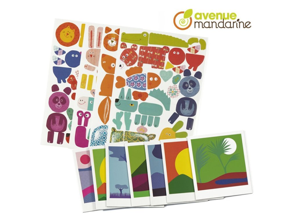 Kreativní sada nalepování Safari od firmy Avenue Mandarine je výtvarná sada pro děti - koláže k nalepení, se kterou si vytvoří krásné obrázky zvířátek.