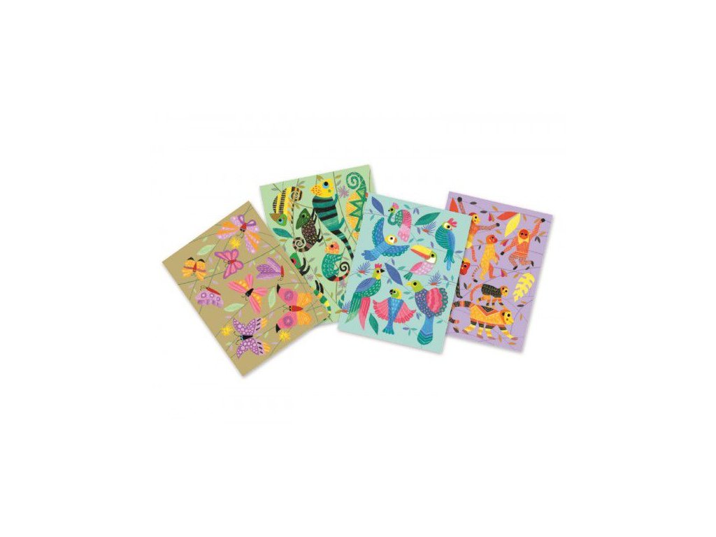 Luxusní výtvarný set Barevná jungle Djeco je malířská kreativní sada, kde si děti vytvoří obrazy pomocí olejových pastelů, vyškrabávání a lepení.