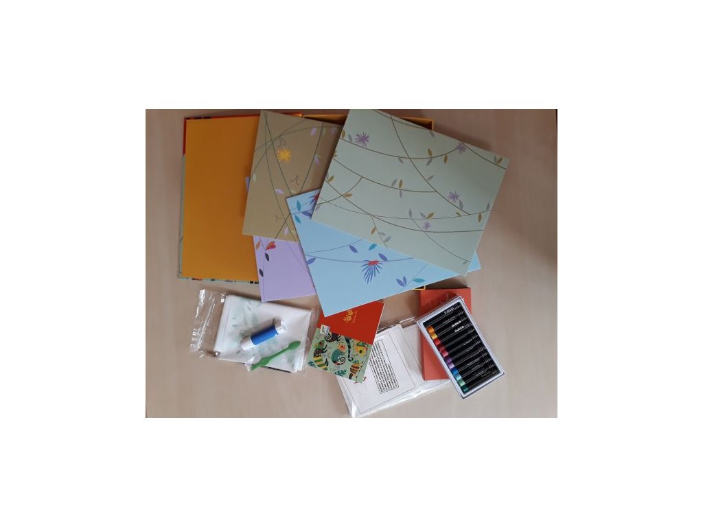 Sada obsahuje: 4 základní obrázky na pevném kartonu, další jednotlivé části obrázků k dotvoření (28 kusů předřezaných archů), 12 olejových pastelů, vyškrabávací pero, lepidlo, štěteček, krycí podložku a podrobný návod k použití