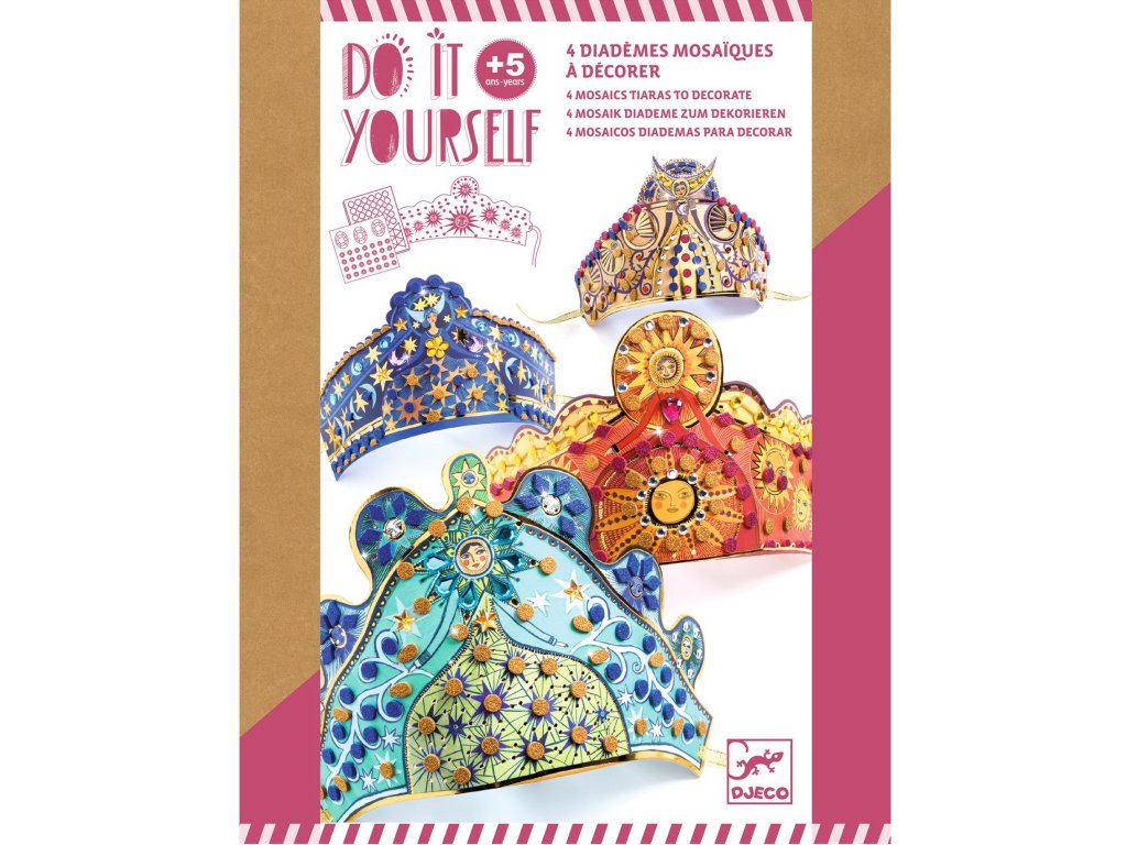 Kreativní sada Třpytivé korunky od firmy Djeco je tvoření pro holky, které je bude bavit a zároveň rozvíjet. Lepením malých mozaikových čtverečků si vyrobí parádní princeznovské korunky na hraní nebo třeba na karneval.