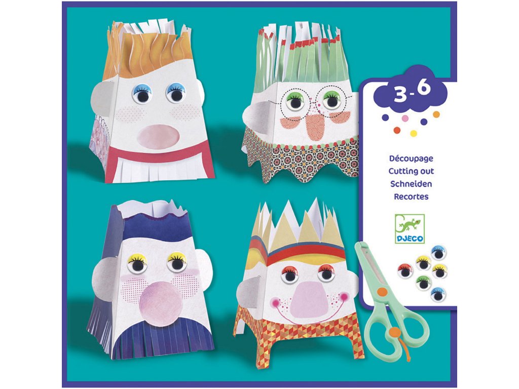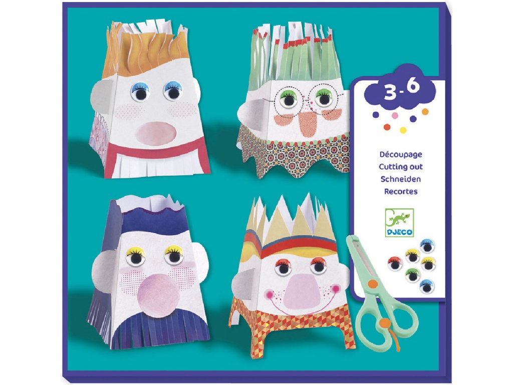 Kreativní sada Účesy - tvoření nůžkami od firmy Djeco provede děti základy stříhání. Postupně si vytvoří 12 papírových postaviček, kterým střihnou ten správný účes a vyberou perfektně padnoucí oči.