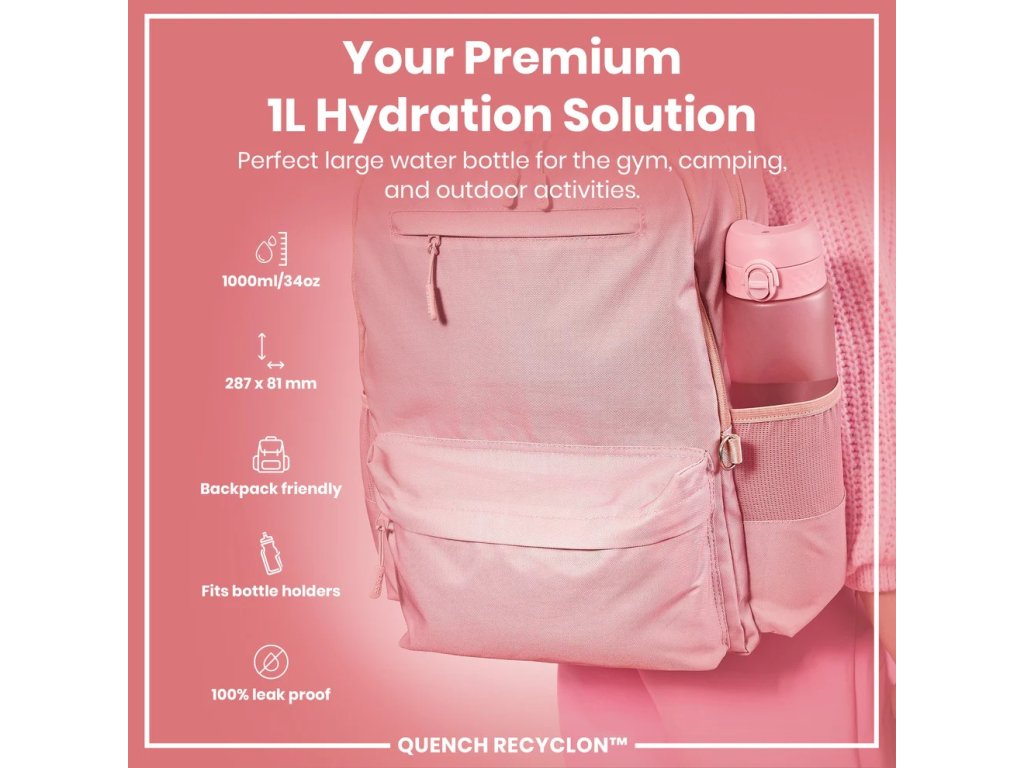Ion8 Leak Proof Rose Quartz 1000 ml je stylová a hravá láhev na vodu pro sportovce, děti i dospělé. Snadno se ovládá, perfektně těsní a využijete ji každý den.