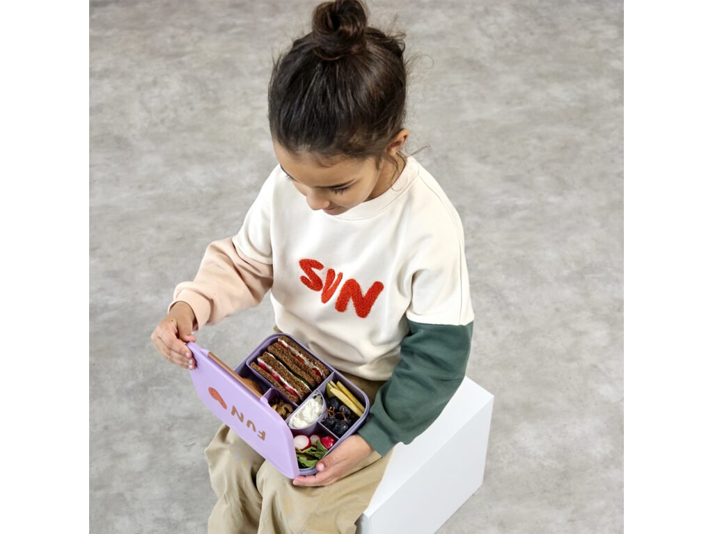 Tato krabička vám umožňuje nachystat porce a velikosti svačiny přesně podle vašich představ nebo požadavků dítěte. Má variabilní vnitřní uspořádání, které můžete volně vkládat a vytahovat.