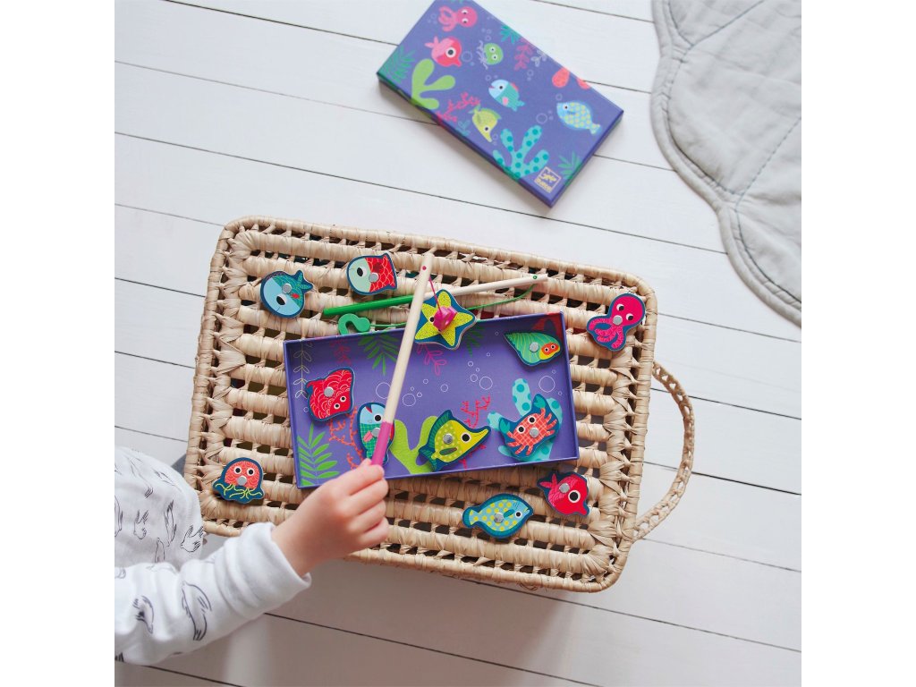 Magnetická hra Ulov si rybičku - barevné ryby od firmy Djeco je populární magnetický rybolov - rybaření, které zabaví i vaše dítě. Roztomilé rybičky a další mořští živočichové čekají na šikovného rybáře. Kdo jich uloví nejvíce je vítězem!