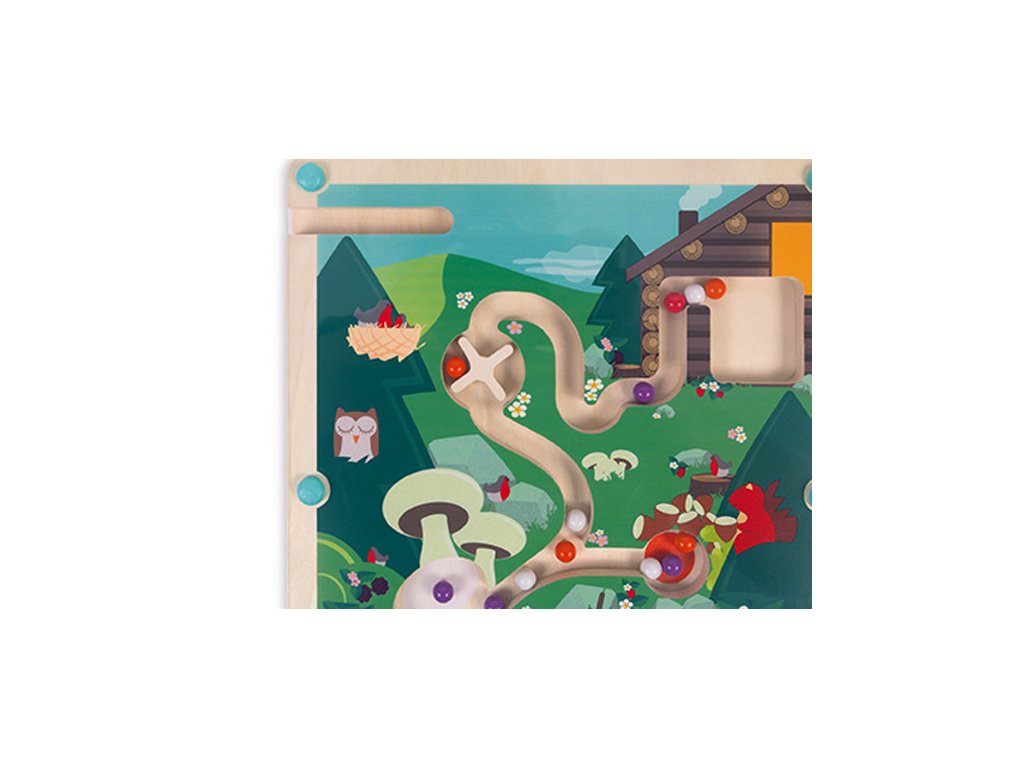 Magnetický labyrint Život v lese od firmy Janod je magnetická hra, která děti naučí barvy, zlepší jim jemnou motoriku a hlavně je zabaví. Dokáží děti překonat překážky po cesty a dostanou kuličky do správných domečků?