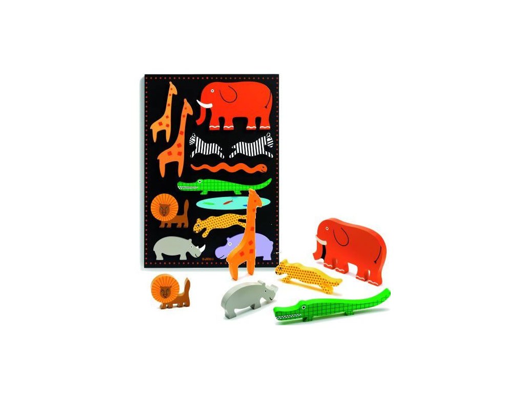 Maxi vkládací dřevěné puzzle Džungle od firmy Djeco jsou dřevěné vkládací puzzle s velkými zvířátky, které je možné vkládat, ale také si s nimi hrát!