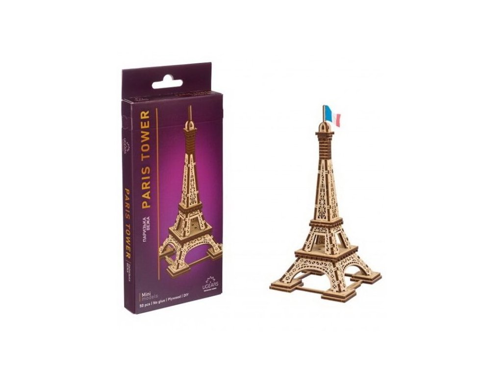 Mechanická 3D puzzle - dřevěná stavebnice - Eiffelova věž, Ugears