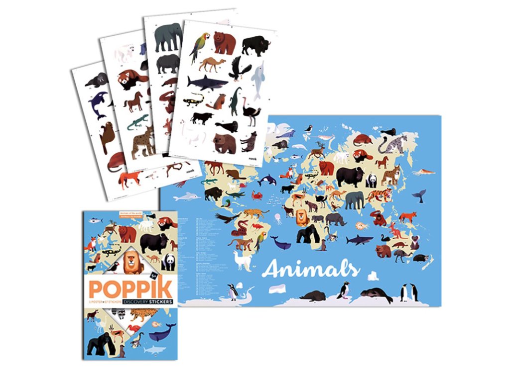 Vzdělávací samolepkový plakát Zvířata světa od firmy Poppik je krásný dárek pro děti. Vytvoří si stylovou dekoraci pokoje a zabaví se lepením samolepek. Samolepky jsou přemístitelné, takže je možné je sloupnout a při špatném nalepení opravit. Zároveň se děti při lepení naučí něco nového.