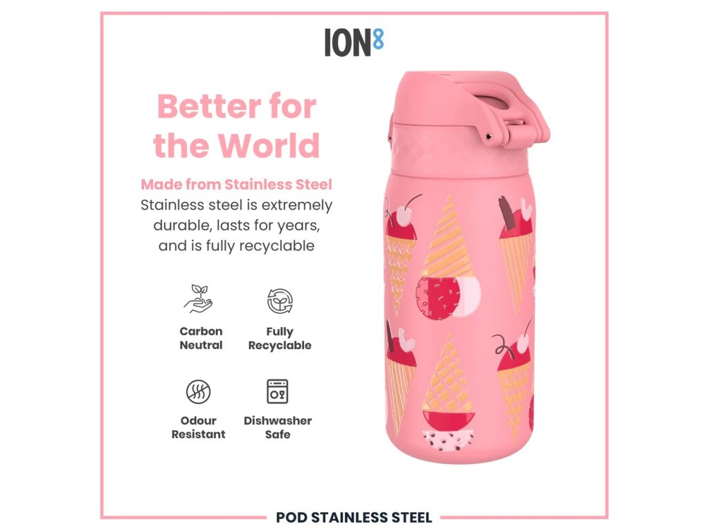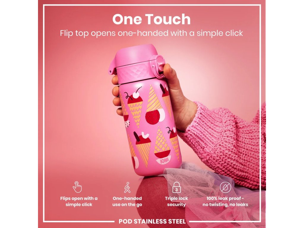 Nerezová láhev na pití Leak Proof Ice Creams 400 ml od firmy ion8 je praktická láhev, kterou užijí děti i dospělí. Hodí se do školy, na sport i na cestování.