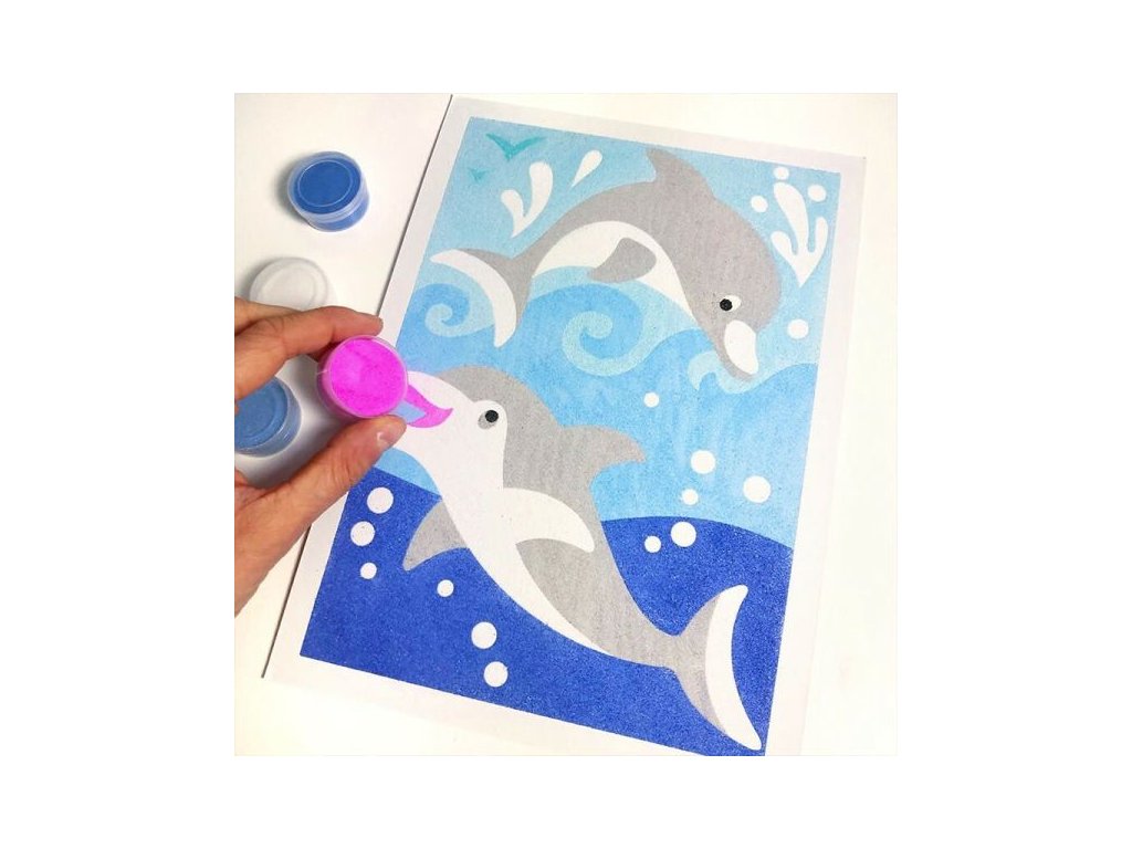 Obrázky z písku Ryby a delfíni od firmy Sentosphere je originální výtvarná sada s barevnými písky, která zabaví vaše dítě na dlouhé hodiny. Po vytvoření obrázků si mohou děti obrázky zarámovat a ozdobit si s nimi svůj pokojíček. Zůstane jim tak dlouho krásná památka na jejich výtvarnou a kreativní činnost.