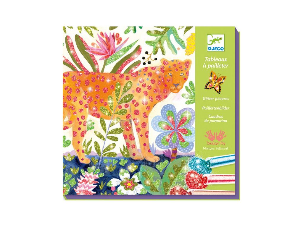 Obrázky z třpytek Tropická zvířátka Djeco je originální kreativní a výtvarná sada s barevnými třpytkami, ze které budou děti nadšené!