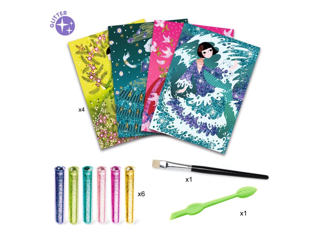 Obrázky z písku Třpytivé tanečnice od firmy Djeco je nádherná a originální výtvarná sada s barevnými třpytkami