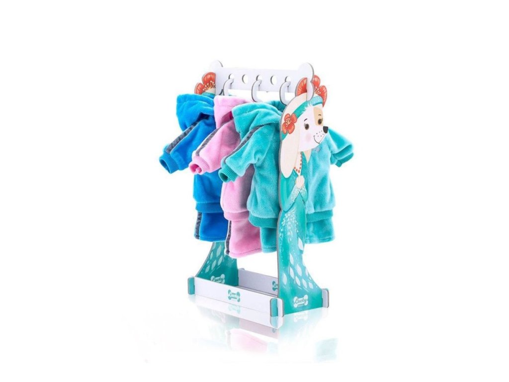Součástí každé sady je stylová krabice se šatníkem, věšákem a ramínky na oblečení – vlastní šatna každého pejska.