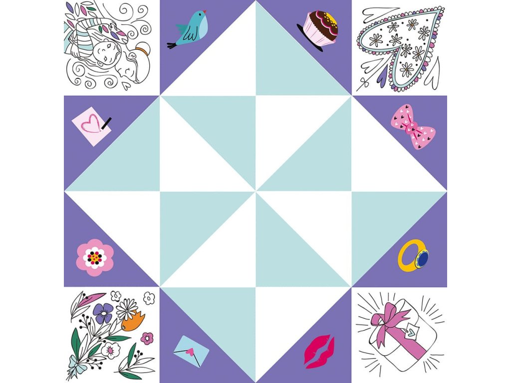 Sada obsahuje: 24 papírových listů, 2 plata (144 kusů) samolepek a návod ke skládání.