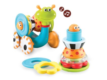 S touto interaktivní hračkou je možné si hrát již od narození. Máma zapíská a dítě kouká, směje se a hračka v něm vzbuzuje pozornost. Od 4.-5. měsíce si dítě dokáže hračku již uchopit samo. Zmáčkne - píská, zatřepe - cinká. Jak jednoduché a přitom tak zábavné.