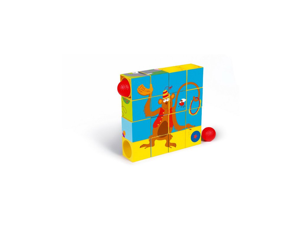 Puzzle a kuličková dráha 2v1! Úžasná hračka pro malé děti. Postavte kostky, poskládejte puzzle a projeďte si kuličkou dráhu.