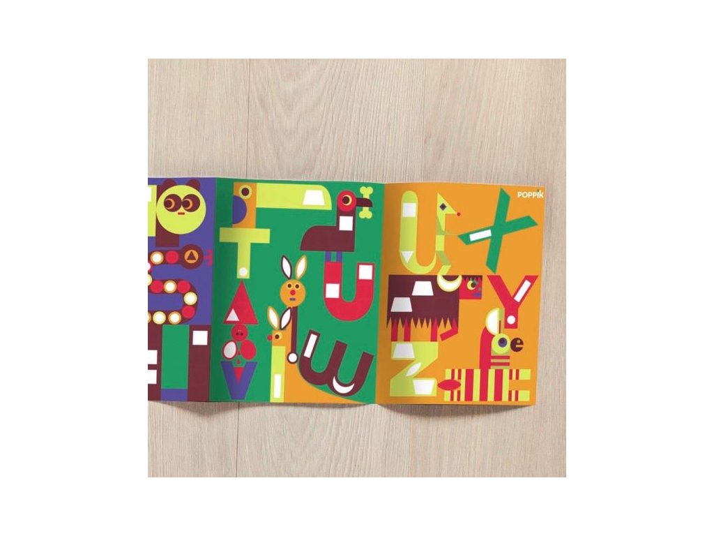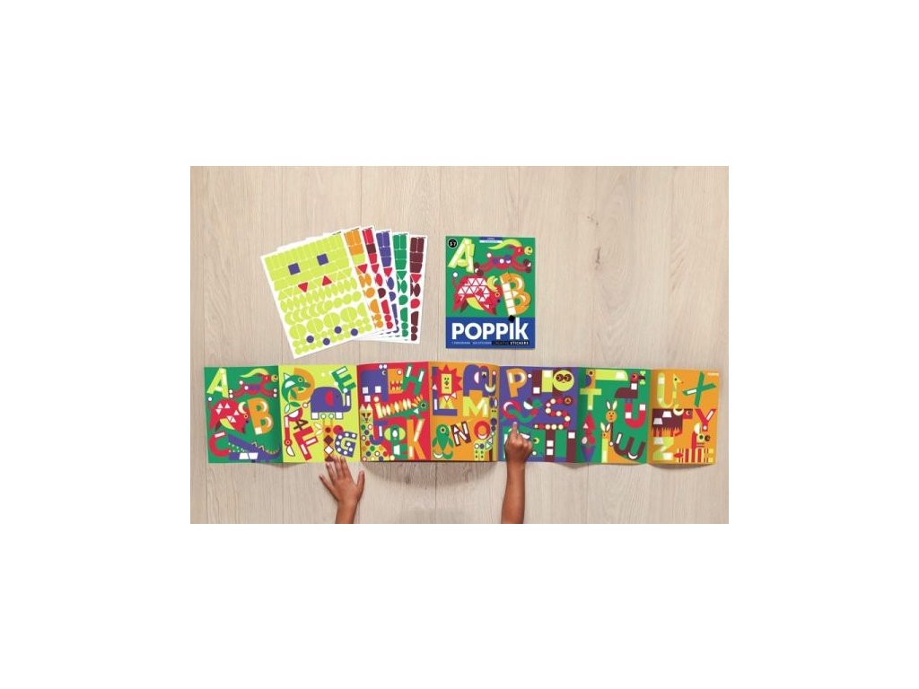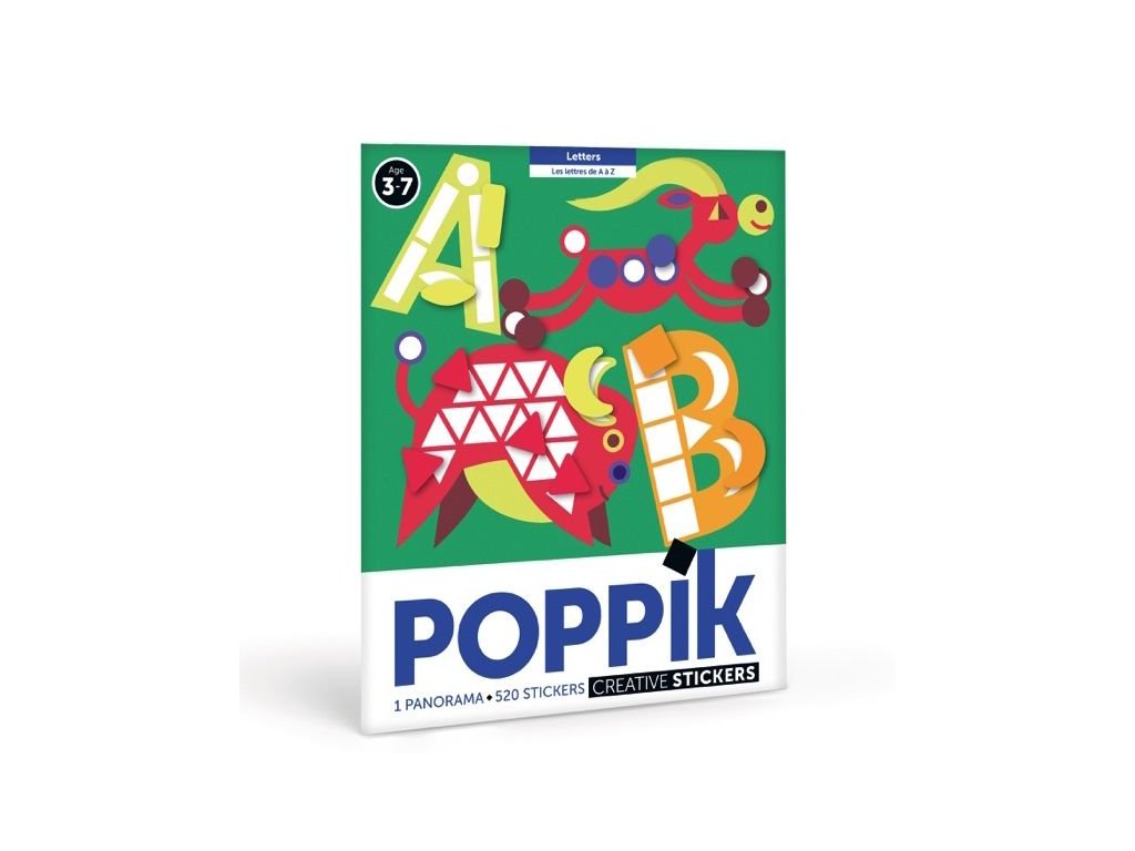 Samolepkové panorama Poppik zabaví všetky malé, predškolské aj mladšie školské deti. Veď lepenie samolepiek je taká zábava. S touto sadou si deti vytvoria čarovnú panorámu a naučia sa prvé písmená (u písmen sú vyobrazené zvieratko podľa anglických slov).
