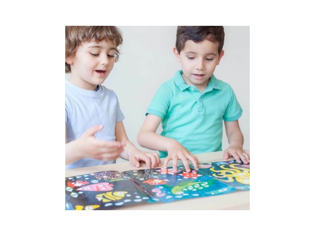 Táto výtvarná sada je veselá samolepková sada, ktorá zabaví dieťa doma, na cestách alebo pri dlhom čakaní.